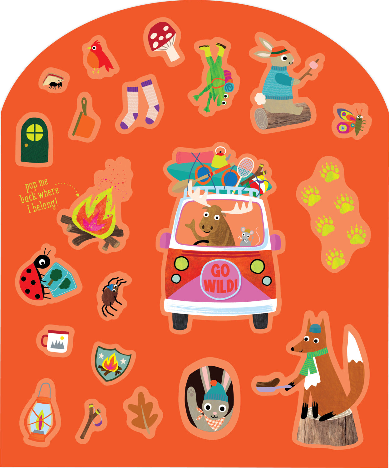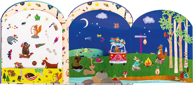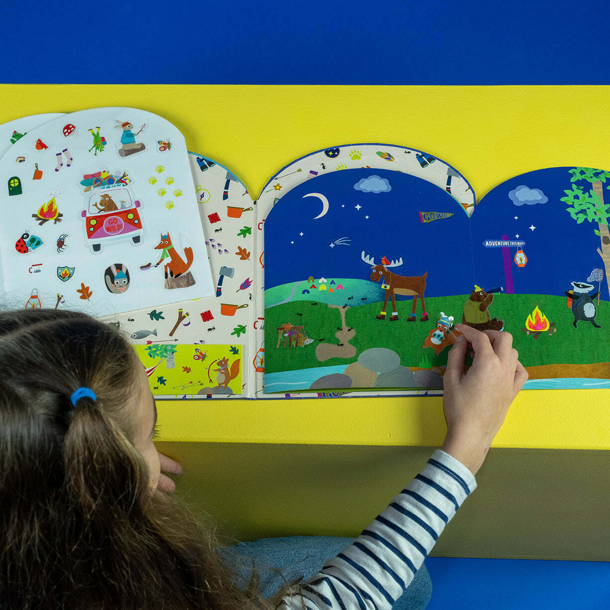 Floss & Rock's Adventure Stick & Play book is so much fun and educational at the same time too! With over 50 fun shaped reusable stickers showing adorable adventure animals and cute camping friends. Look out for a moose on the move, a star-gazing bear, a squirrel playing cards, birds, insects, frogs and so much more. There are 2 fold out scenes to create and make up stories using the repositionable stickers.