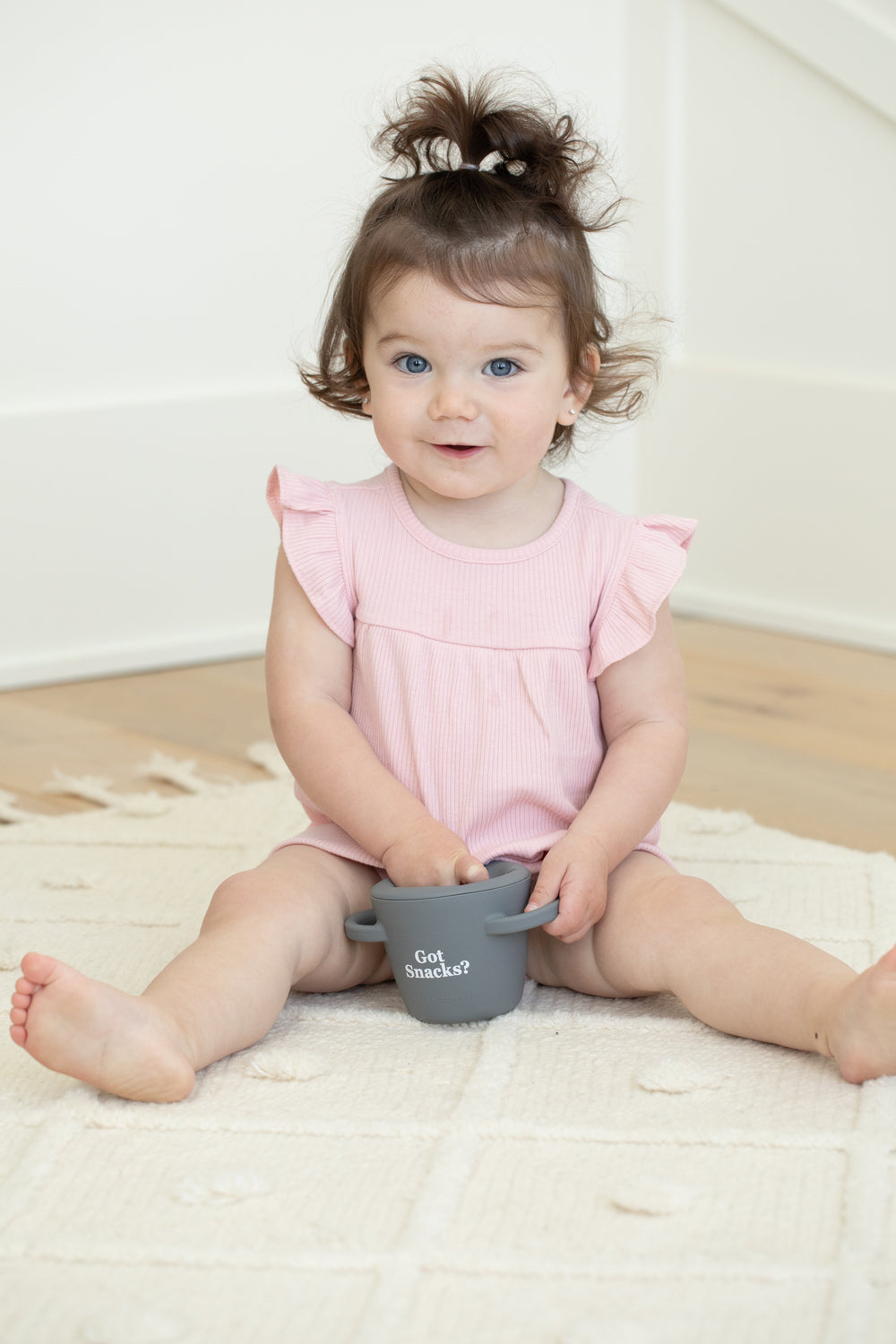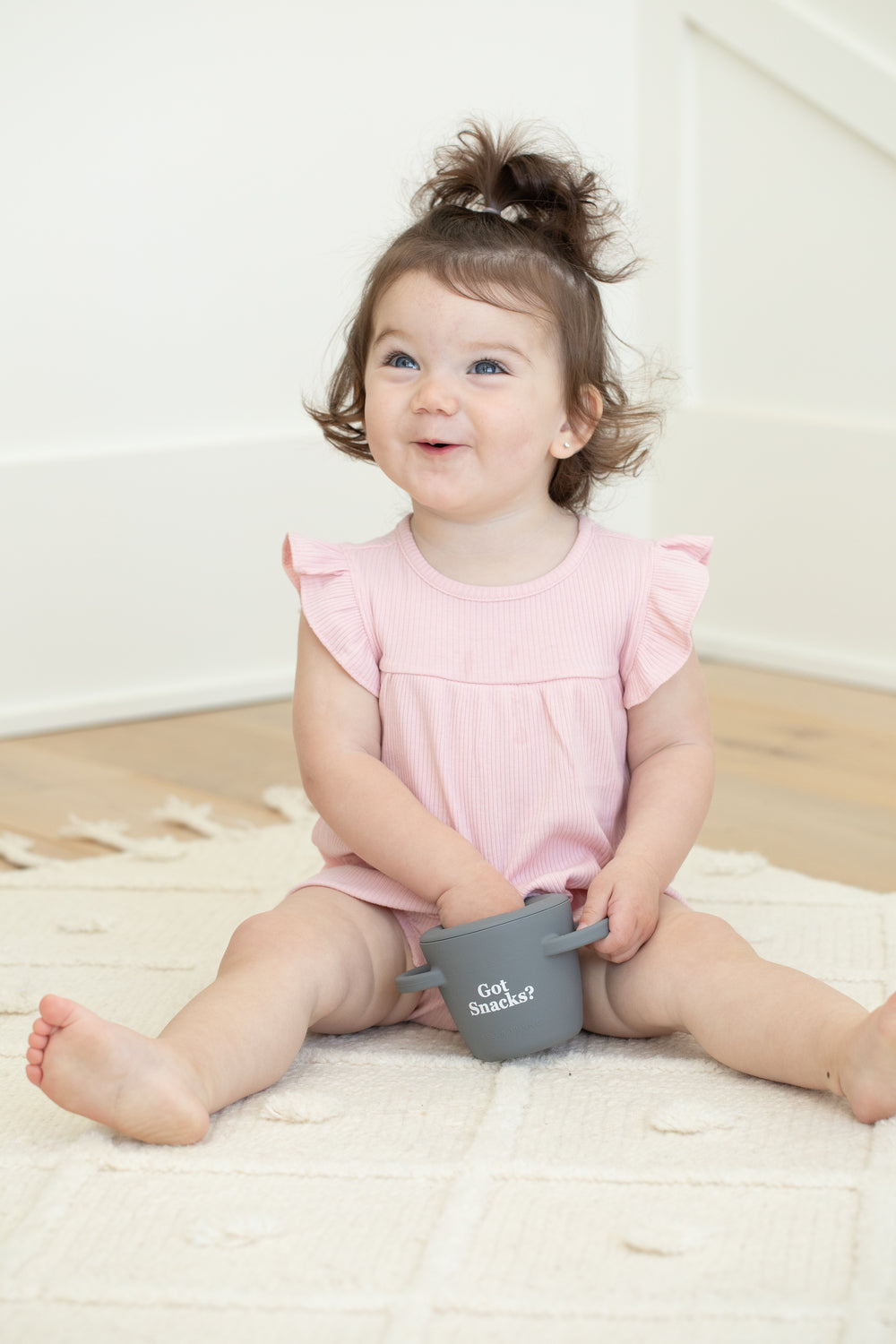 Designed with easy grip handles for little hands to independently self-feed. Hold the applause because there’s more… The horizontal handles allow the cup to securely fit in the car seat and stroller cup holders. The simple two-piece design makes pouring in snacks a breeze! The mess proof, tight lid stays in place. The soft silicone opening allows little hands to easily access food and prevents spills.