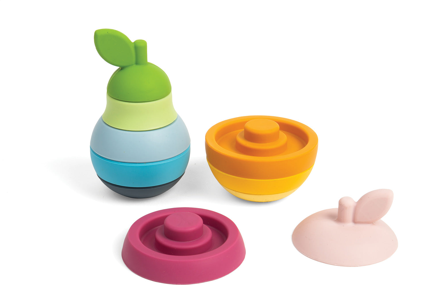 Touch, feel, chew and stack! This Stacking Apple & Pear set is a stacking toy with a fruity twist. Each stacker comes with five colourful pieces in varying sizes, which littlens can build into their apple and pear shapes. These silicone baby toys also double up as teethers to soothe sore gums.