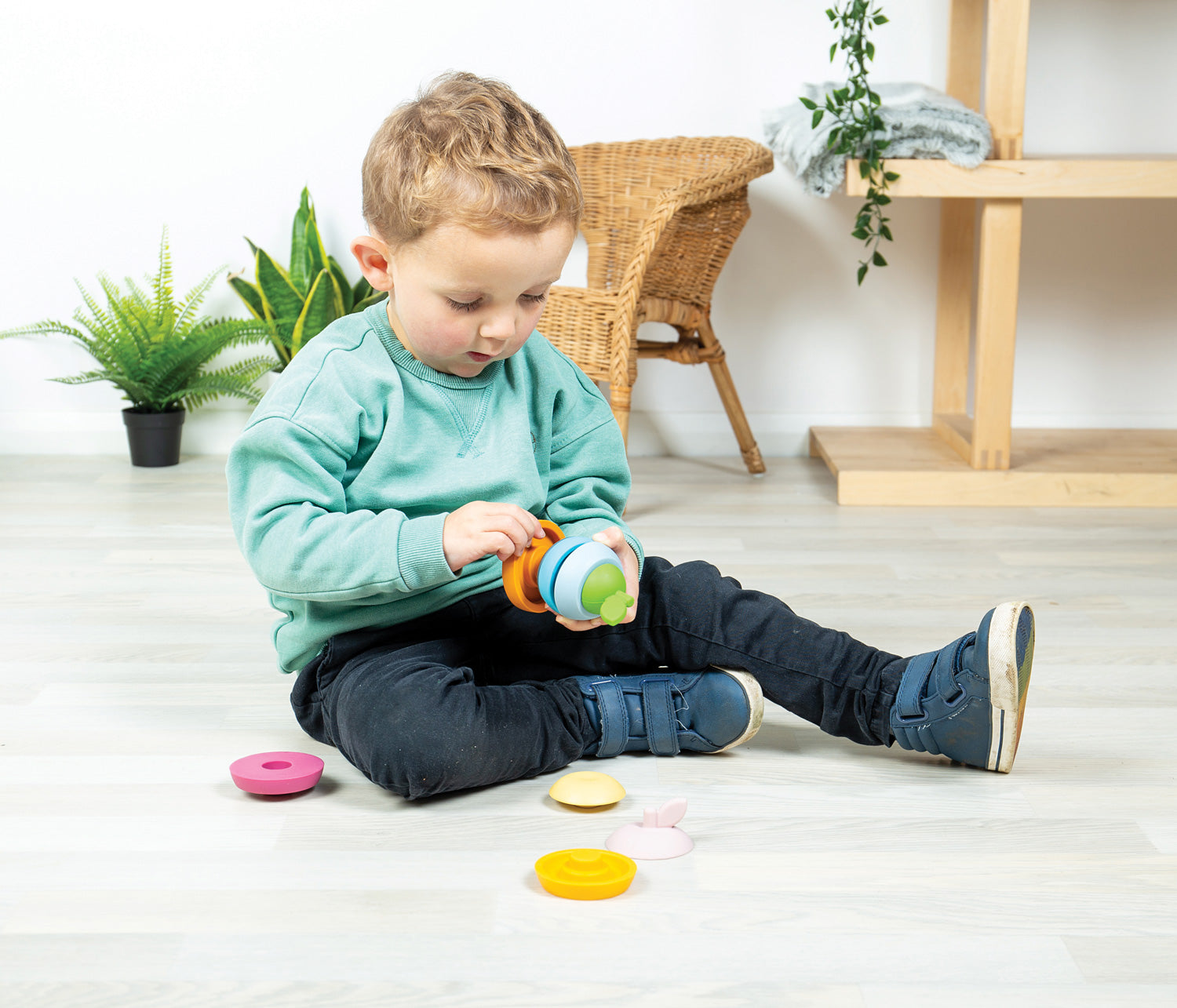 Playing with stacking toys from an early age has heaps of childhood developmental benefits, from boosting hand-eye coordination to improving fine and gross motor skills. Made from 100% silicone. Clean with warm water and mild soap.
