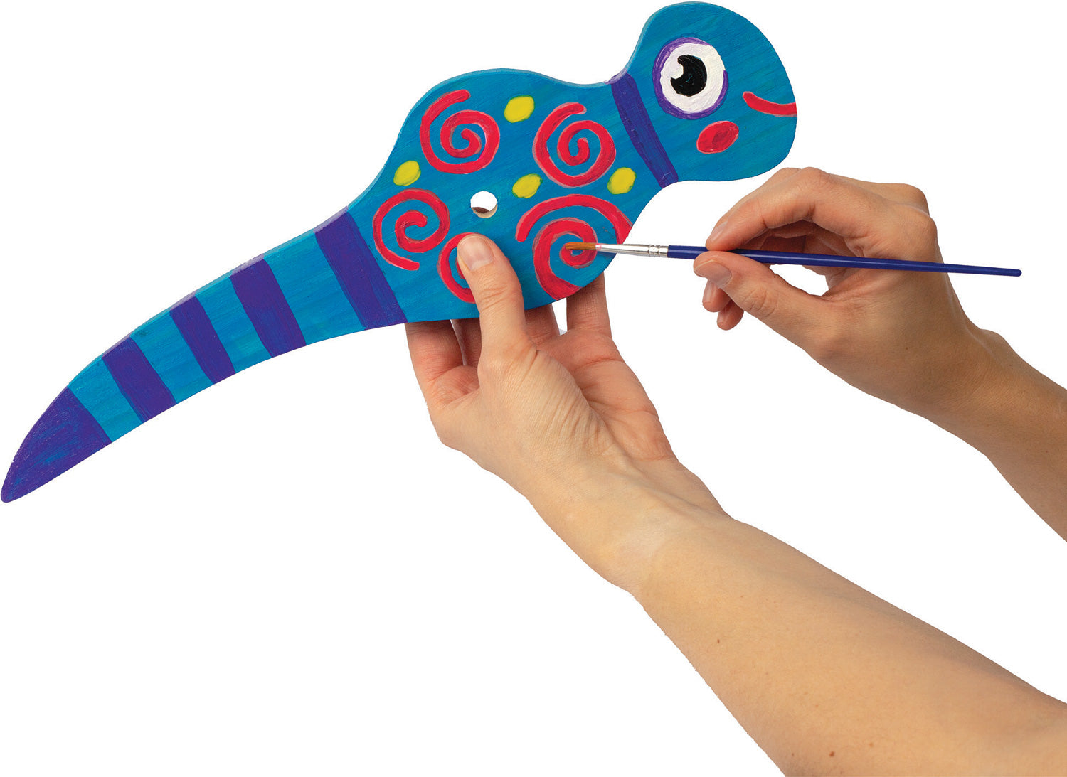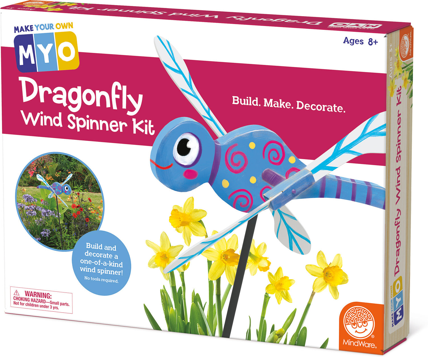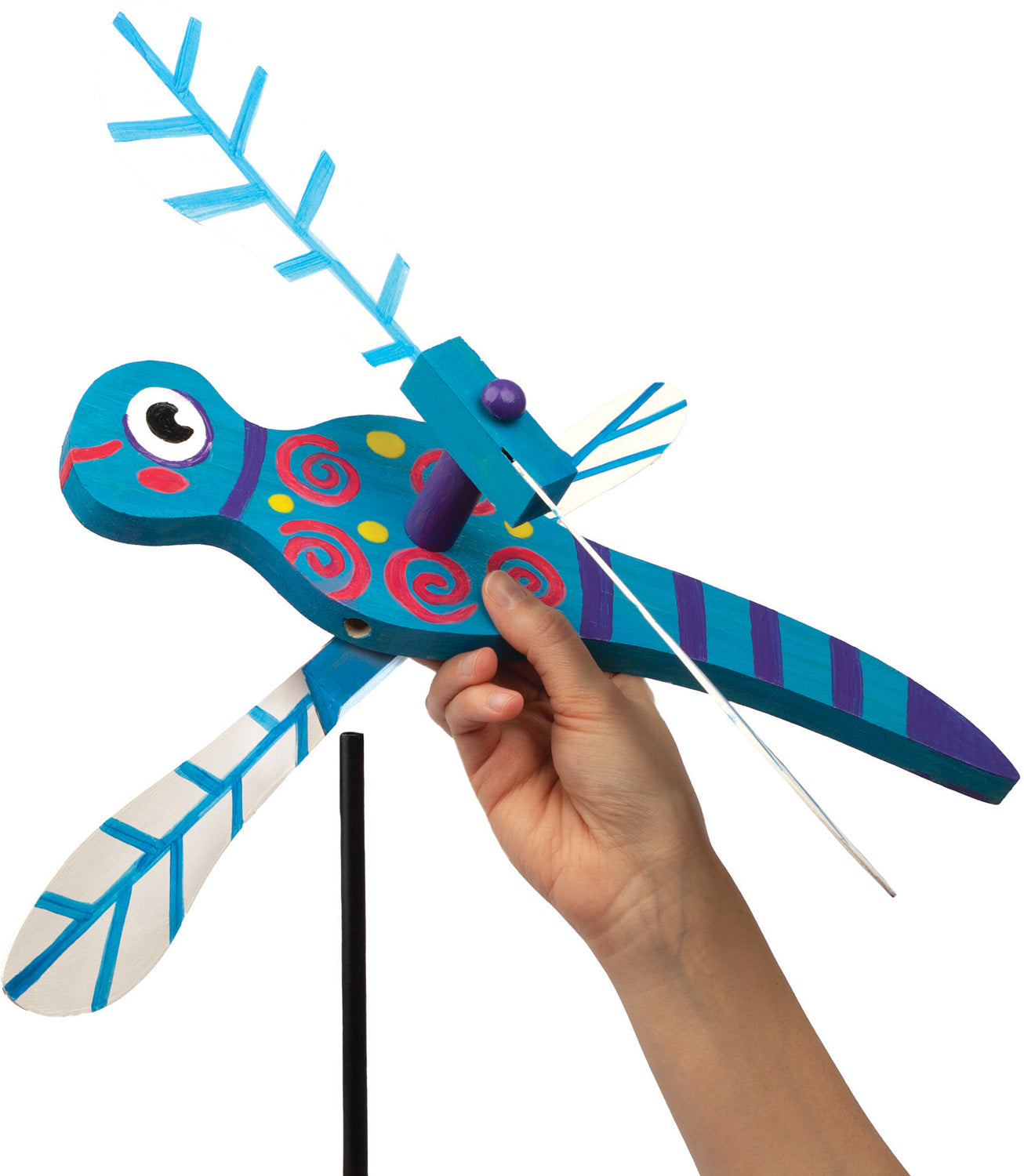 Add a touch of magic, a splash of color, and a lot of movement to your garden or backyard with a dragonfly wind spinner kit! Tweens gain confidence and learn new painting techniques as they put together this cool wooden spinner from start to finish. Simply paint the pieces, let it dry, assemble, and place it in the garden to watch the wind work its magic on the wings! This kit comes with everything needed, including a steel pole. Finished dragonfly measures 16" x 6". To make this a fabulous sibling activity, also pick up the MYO Bumble Bee Wind Spinner Kit!