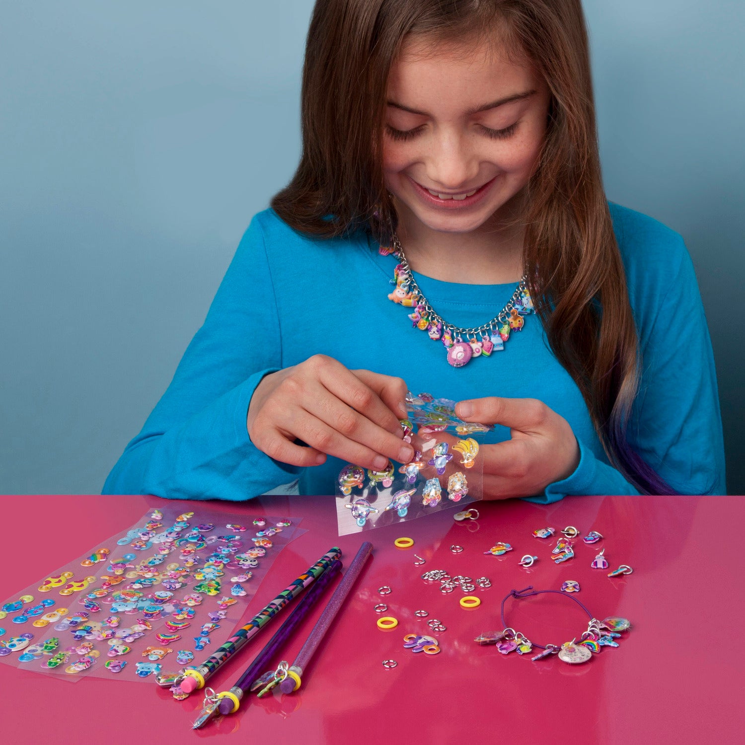 From pineapples to pandas, from pizza to planets, the amount of charm packed into this set is spectacular! It''s easy and fun to make - simply stick two puffy stickers together to make a charm and add it to a necklace, pencil, shoe or bracelet or a look all your own. There are even 21 glitter-filled shaker charms for added sparkle!