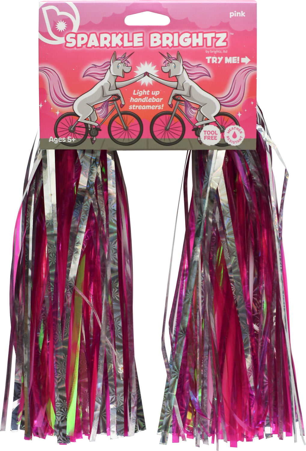 Add some spirit to your handlebars with Sparklebrightz light-up streamers! With a couple LED light strings, they'll glimmer and shine, catching the attention of the other neighborhood kids. Batteries are included and install is hassle free, so your kid won't have to wait all day to start riding.