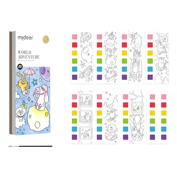 Our watercolour painting for kids is an ideal mess-free introduction to painting that’s incredibly easy to use. Simply wet the paintbrush, moisten the paint palette, and fill in the pictures.