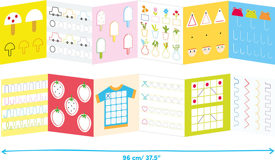 Get your crayons ready – it's time for some more advanced creative exercises: keep tracing lines! This creative set contains 2 long (37.5"!) accordion books with 23 exercises and illustrations full of fun details, which will inspire children to pick up their crayons and practice precise hand movements.