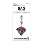 This charm easily clips onto StickerBeans charm holders, keyrings, purses, zipper pulls, and lanyards, making it endlessly versatile and fun to mix and match with other charms. Kids can build their own custom charm collections—swapping designs to match outfits, moods, seasons, or special events. Whether they love sparkle, glam accessories, or collectible fashion items, this diamond charm adds a bold, stylish statement to any setup.