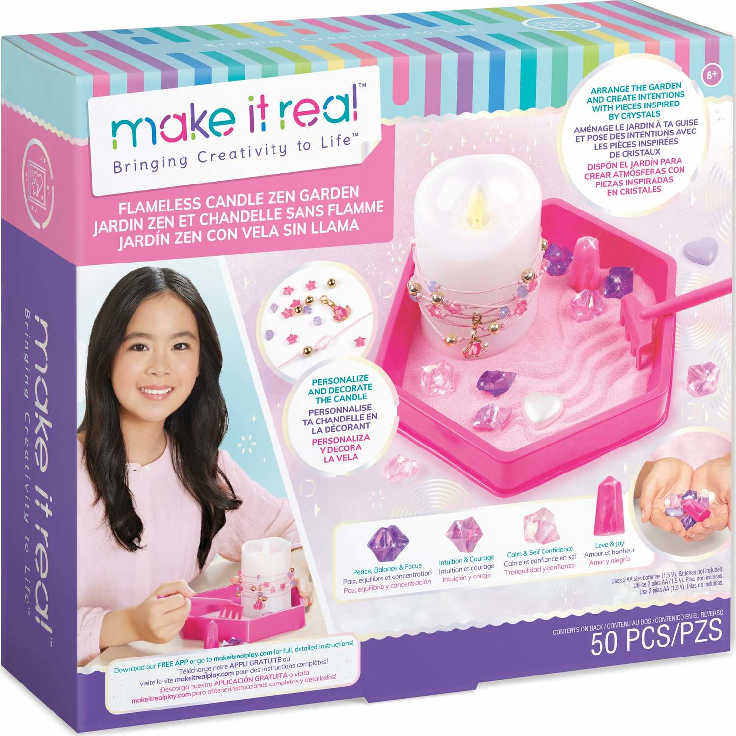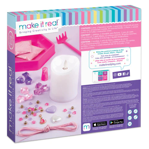 Decorate and enjoy this calming candle and garden set for a creative and rewarding activity! The set includes colored sand, gorgeous crystal-shaped pieces, assorted beads, and more. The candle is flameless so there’s no hazardous open flame, just fun for tweens to enjoy! Perfect as a gift, this kit offers tweens both a creative activity and a special time for relaxing and self-care. Uses 2 AA size batteries (1.5 V). Batteries are not included.
