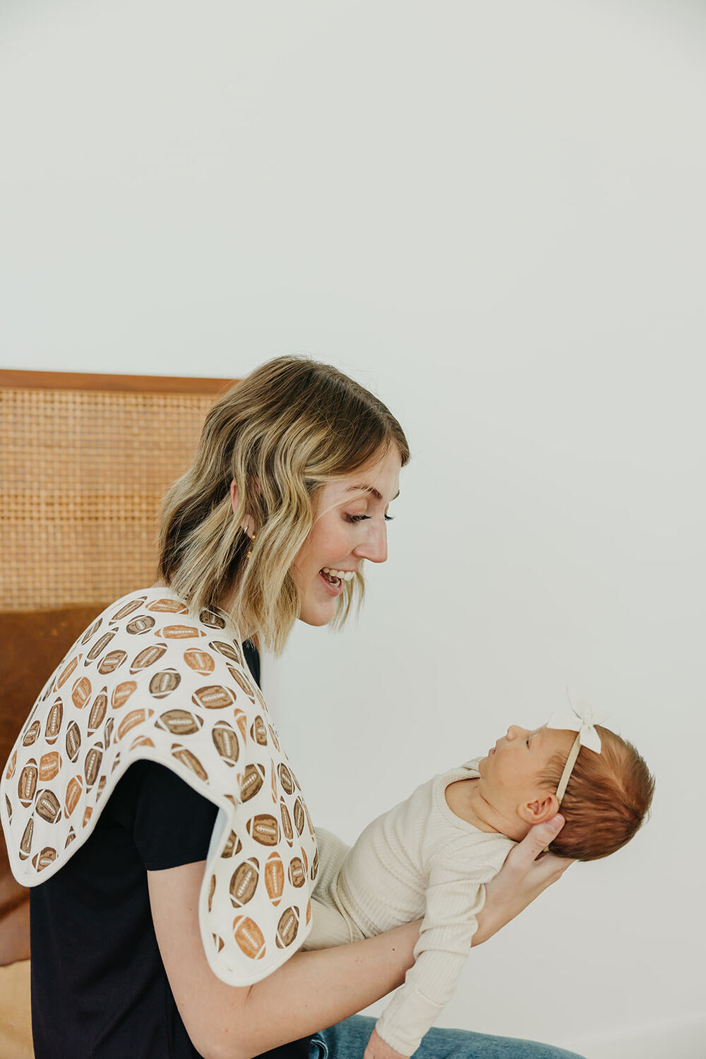OVERSIZED 21x10 INCH SIZE - Copper Pearl's burp cloths come in a generous 21x10 inch size, providing greater shoulder coverage (and less outfit changes) for Mom and Dad.