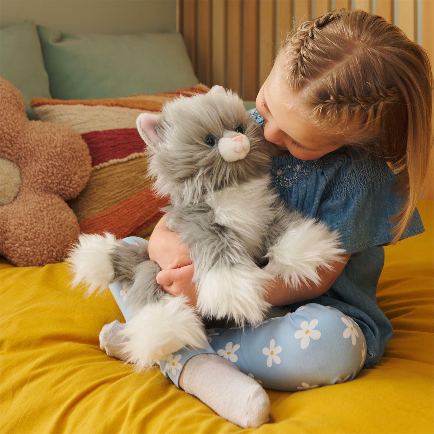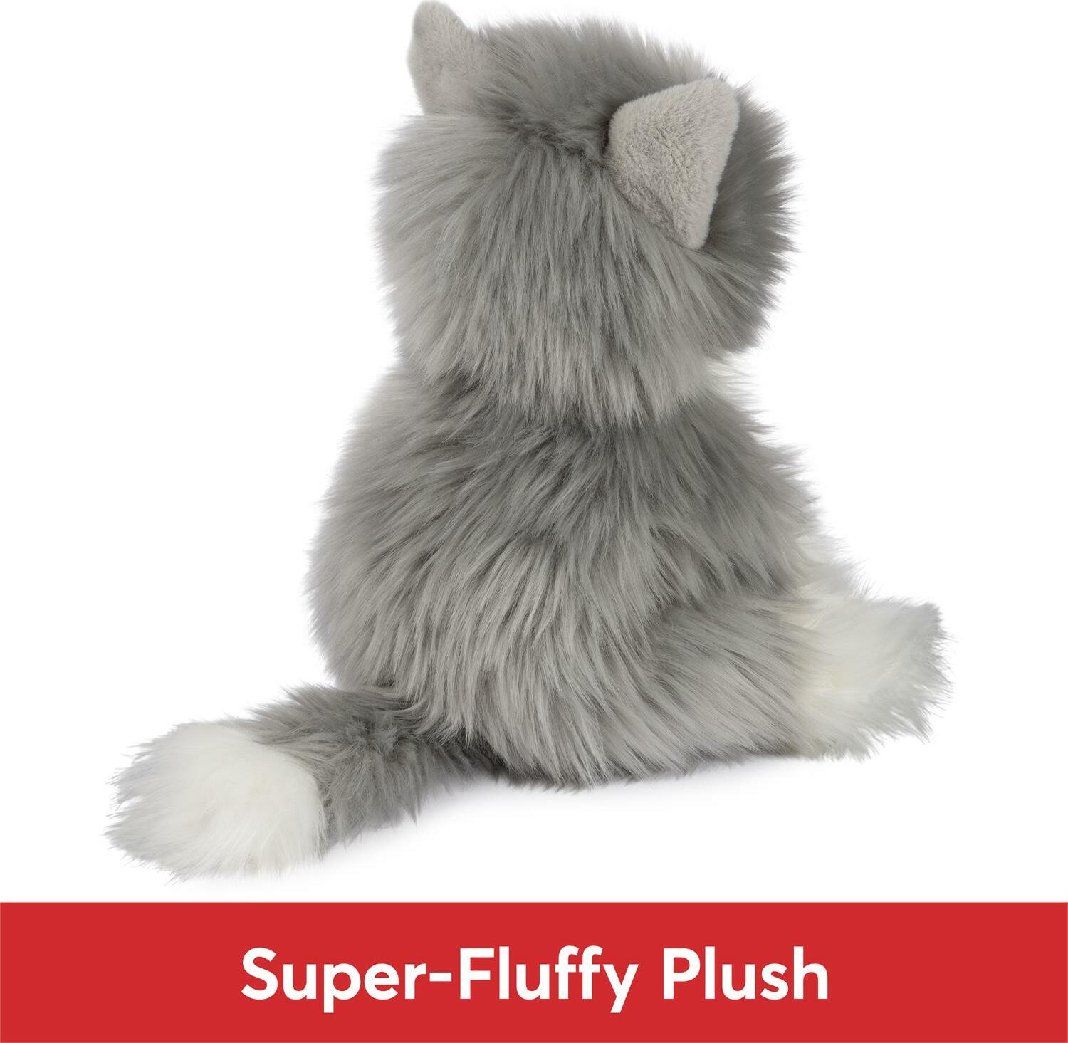• CAMILLA KITTEN PLUSH: Camilla is an adorable, super-fluffy gray-and-white kitten with white paw pads. Sitting at 9', this pretty kitty also has bright blue eyes, a pink nose, an embroidered smile, and a unique, slightly floppy design that makes her more h