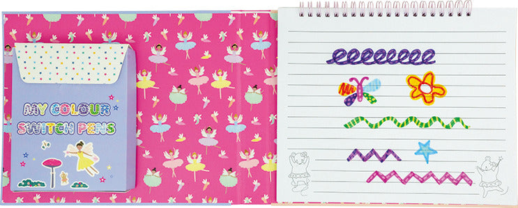 Color Switch Magic is unique as not only do you get the super fun color changing pens and mega magic white pen - you also get a ring bound book packed full of fun! Use the lined pages to write words and sentences, then use the magic white pen to make the letters stripey or multicolor, then let loose on the doodle pages and discover endless creative possibilities!