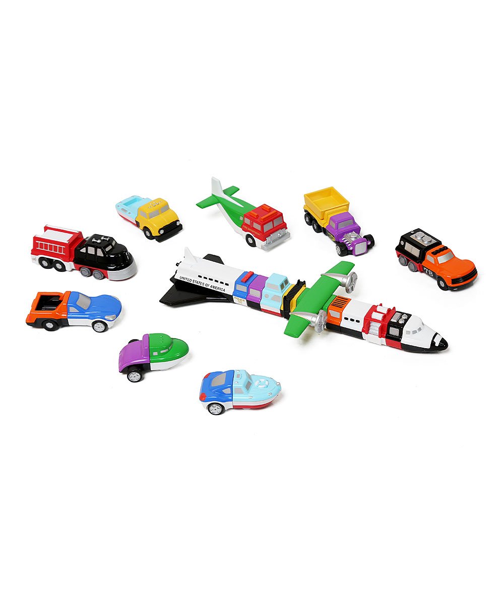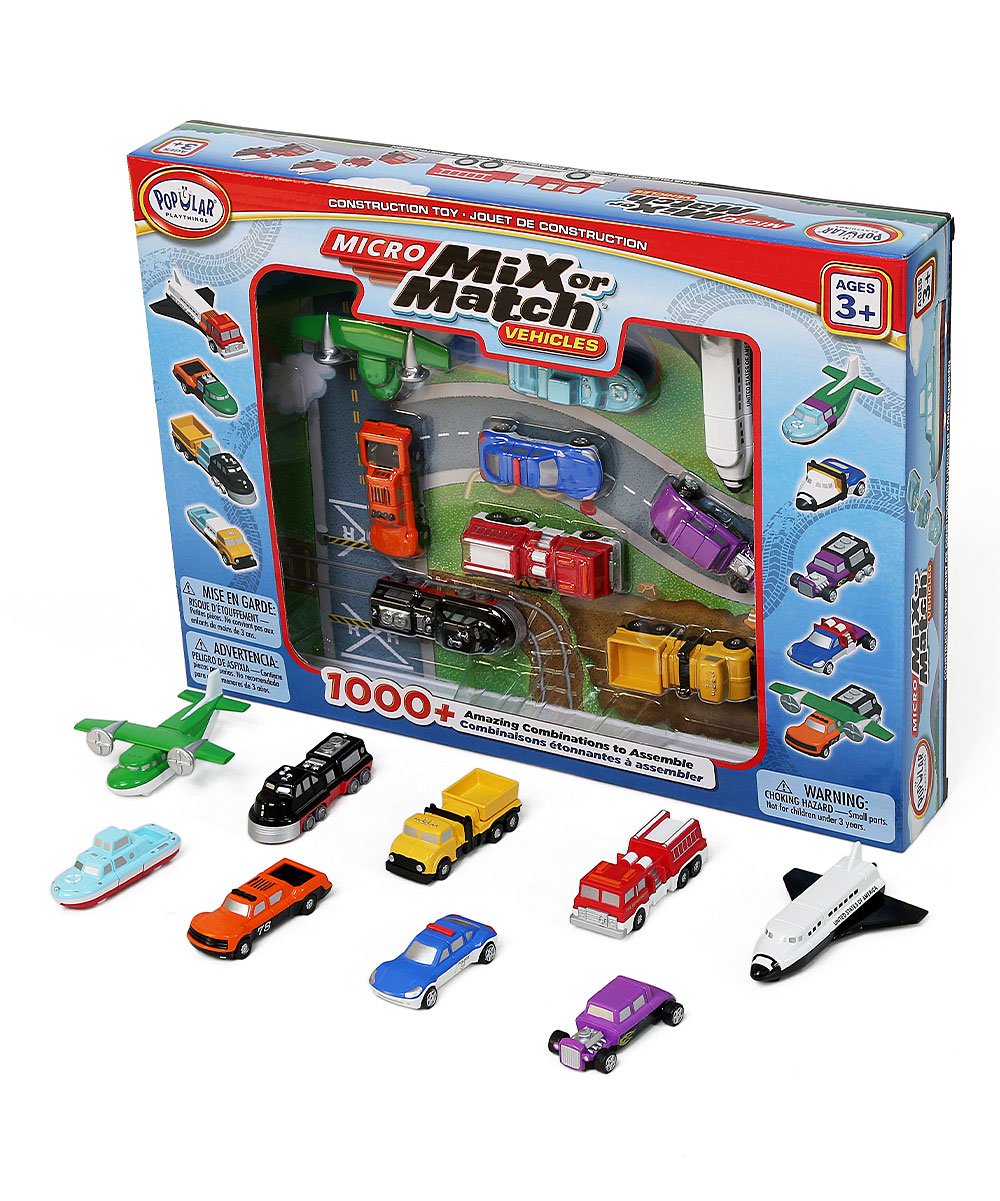 This assortment of micro toy vehicles interchange and snap together to make thousands of imaginative new creations.