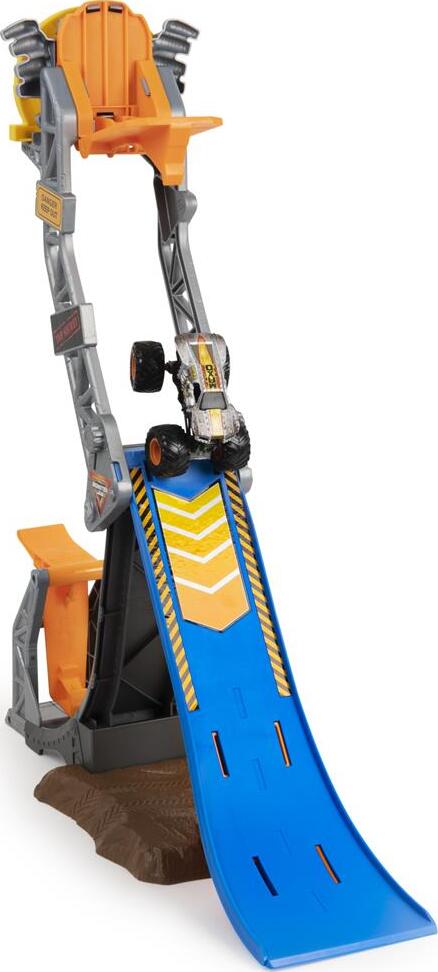 - PULL OFF EPIC BACKFLIPS: Slam the launcher just right to send your 1:64 scale Monster Jam truck up the ramp, hitting the trick bar to perform a big air backflip onto the landing ramp!