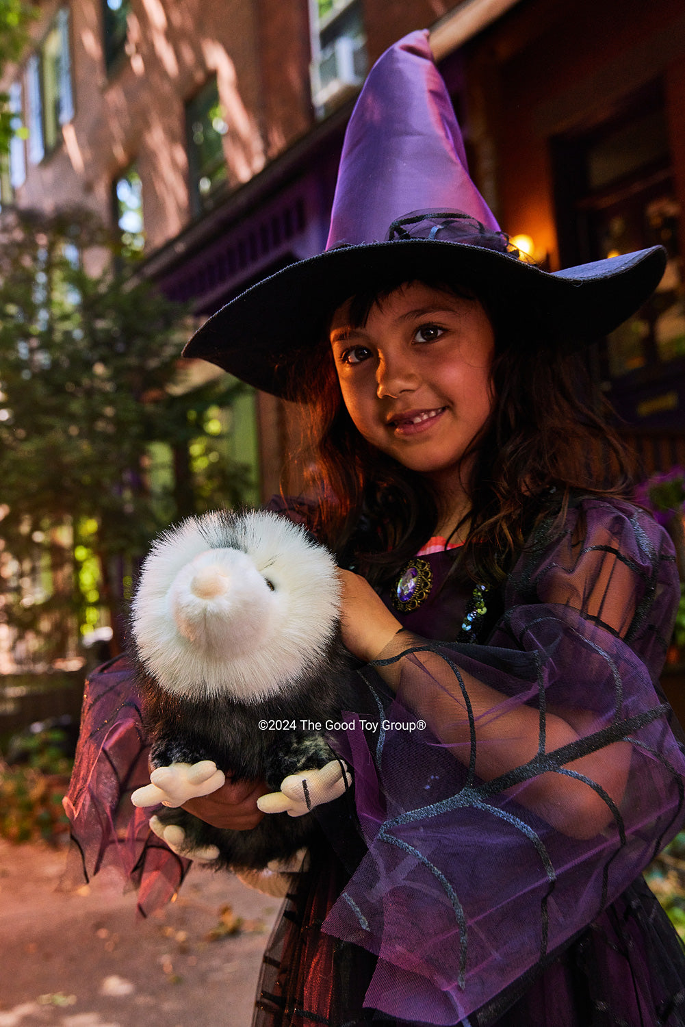 Ozzy is shy but friendly! With a rounded salt and pepper furry body and pink paws and tail, it looks ready to tuck away into a hiding place. Add in the soft nose and deep dark eyes, and this becomes one quietly lovable buddy! Possum measures 13 inches long.