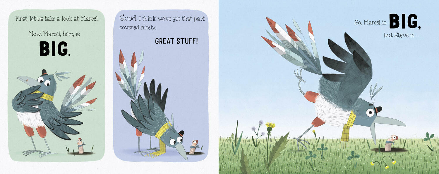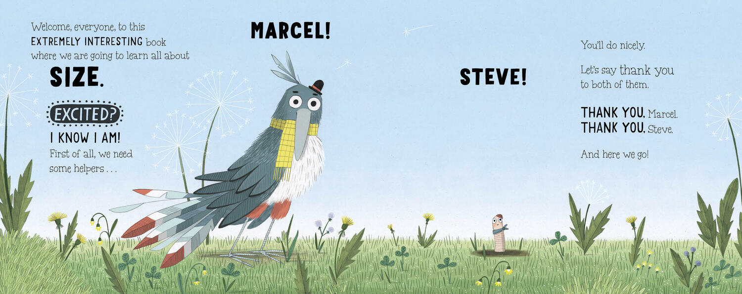 Welcome to this extremely interesting book about size. Marcel is a bird and he is big. Steve is a worm, and he is . . . Wait a minute! Steve has DISAPPEARED! Does Marcel know something about it? And can he be persuaded to return that poor worm RIGHT NOW?!