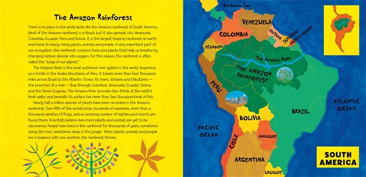 Three children embark on a day-long trek through the Amazon, discovering all sorts of rainforest creatures in their natural habitats. The charming, rhyming text highlights an adjective for each creature. The story is complemented by educational endnotes about the creatures in the story, and the peoples of the rainforest.