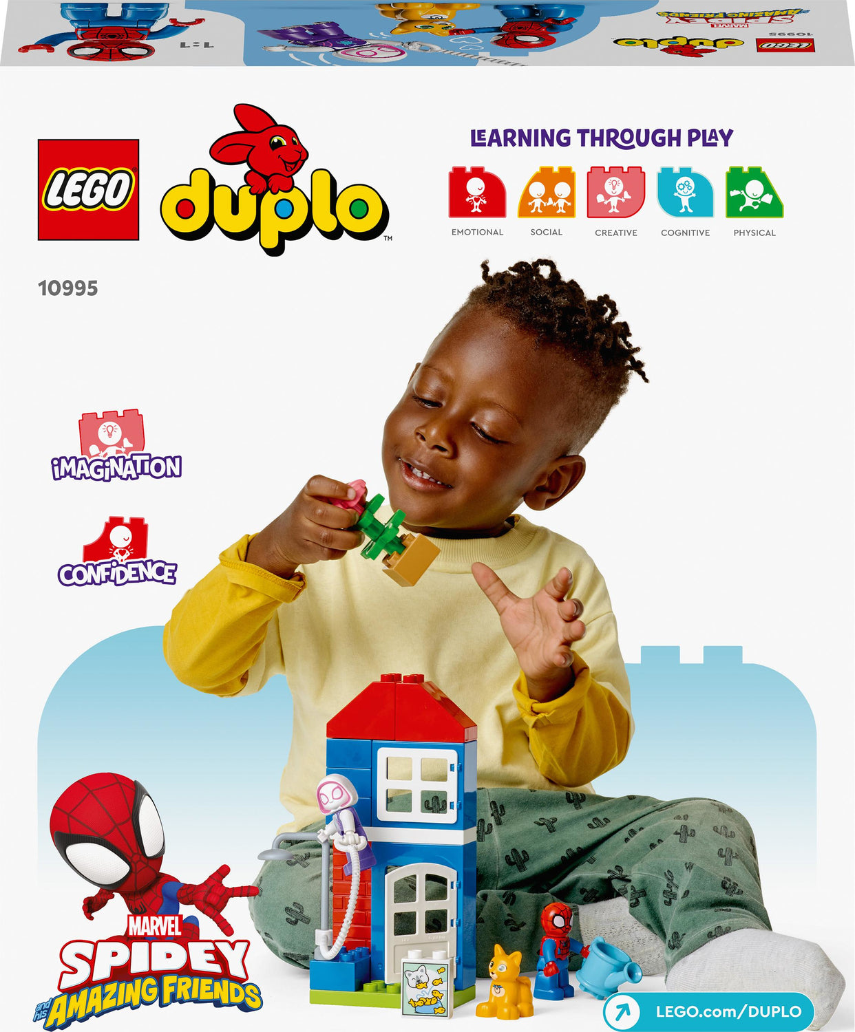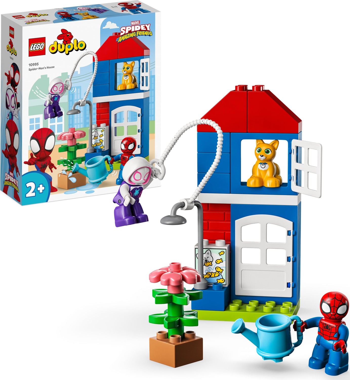 - The Spider-Man building toy features a buildable house in DUPLO bricks, plus Spider-Man, Ghost-Spider and Bootsie the cat figures