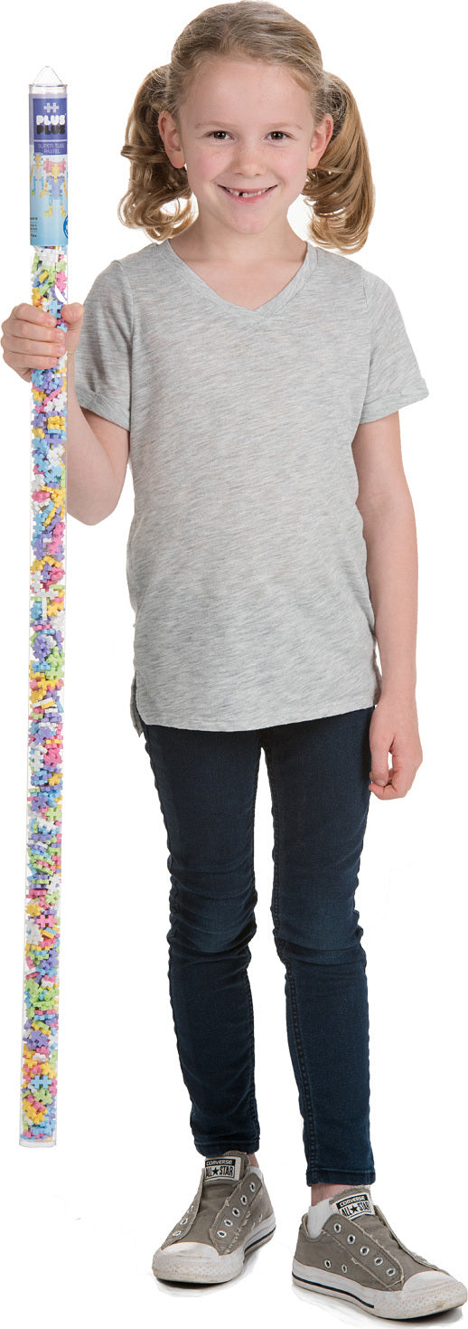 How can 1 simple, interlocking shape create so much building fun? 500+ pliable, puzzle-like pieces designed in Denmark easily lock together to make flat mosaics or dimensional creations. They all travel in a cool super-sized 3' tube.