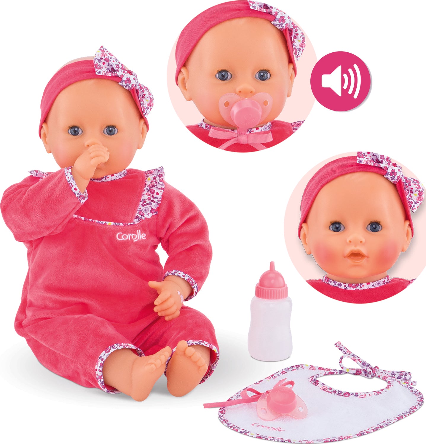 Lila Cherie comes with her own interactive pacifier and feeding bottle and a tie-on bib.