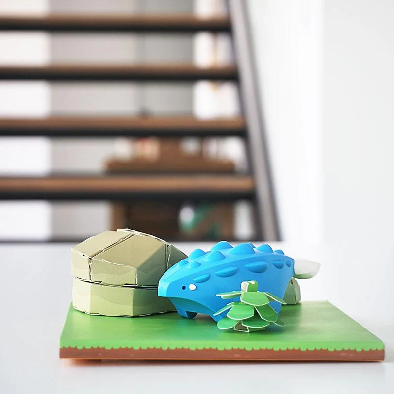 Ankylo is part of a collectible Half-Dinosaur series that combines multiple sensory learning and play styles into one package. Complete with a diorama for an immersive Dino adventure, the toy has interactive magnets to satisfy snapping (clicking!) needs and a skeleton puzzle for endless tinkering. Collect and connect them all to create your own prehistoric world. Present your LearnPlay HALFTOYS® on a child's toy shelf, collector case or personalize your desk at work.
