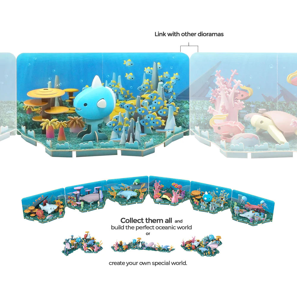 HALFTOYS® Mola is part of a collectible Half-Ocean series that combines multiple play styles into one package. Complete with a diorama for an immersive oceanic adventure, the toy has interactive magnets to satisfy snapping needs and a skeleton puzzle for endless tinkering. Collect and connect them all to create your own underwater paradise!