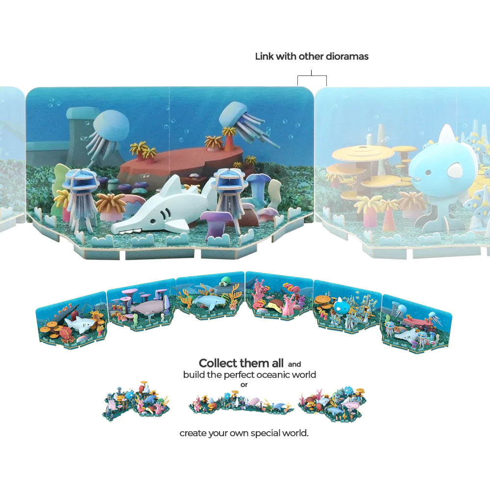 HALFTOYS® Saw Shark is part of a collectible Half-Ocean series that combines multiple play styles into one package. Complete with a diorama for an immersive oceanic adventure, the toy has interactive magnets to satisfy snapping needs and a skeleton puzzle for endless tinkering. Collect and connect them all to create your own underwater paradise!