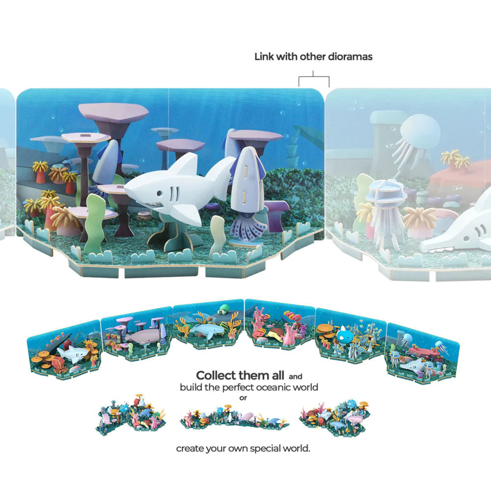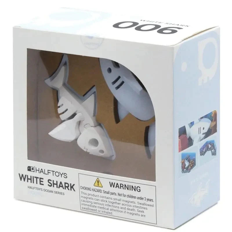 HALFTOYS® White Shark is part of a collectible Half-Ocean series that combines multiple play styles into one package. Complete with a diorama for an immersive oceanic adventure, the toy has interactive magnets to satisfy snapping needs and a skeleton puzzle for endless tinkering. Collect and connect them all to create your own underwater paradise!