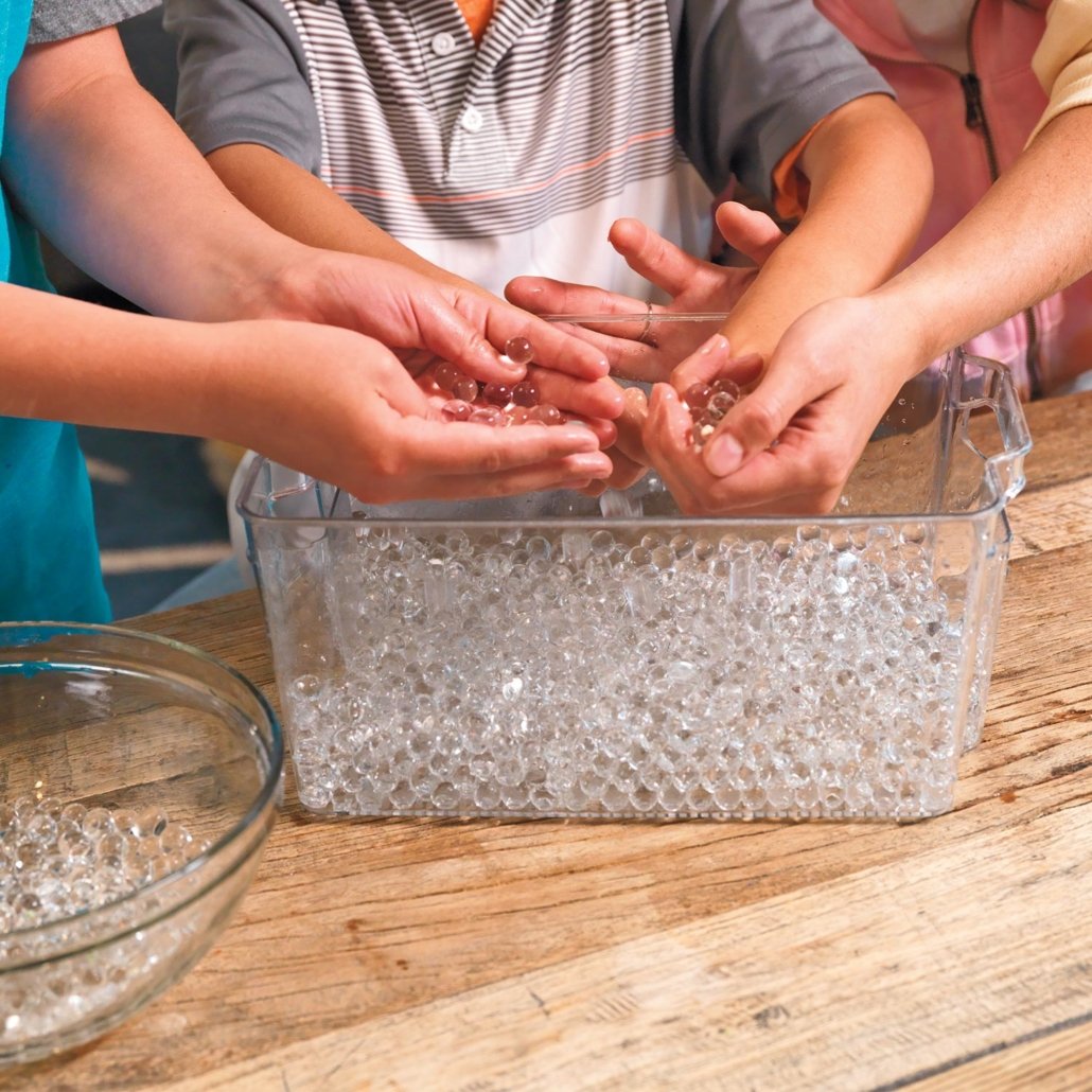 Like all of our fun and fascinating polymer, or hydrogel, products, these tiny spheres, teach a big lesson in color mixing, light refraction, and the importance these thirsty pebbles can play in maintaining a healthy environment. The possibilities for experimentation are endless when you drop these spheres in water.