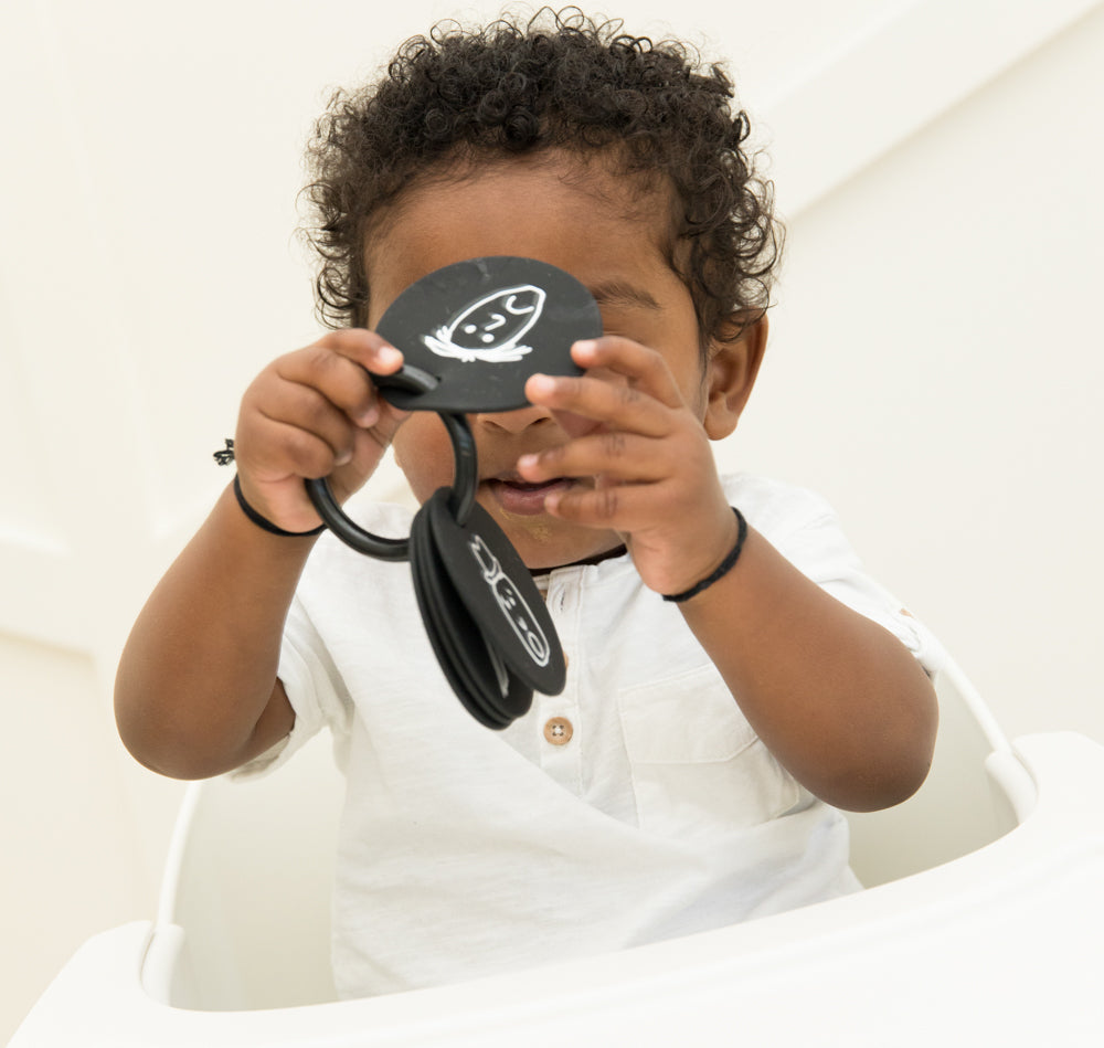 - TAKE ALONG: With a ring that holds the set of 5 together and attaches to a carrier or play gym, our Teething Flashcards are great in the car, at an appointment or at the park. They are built for fun on-the-go!