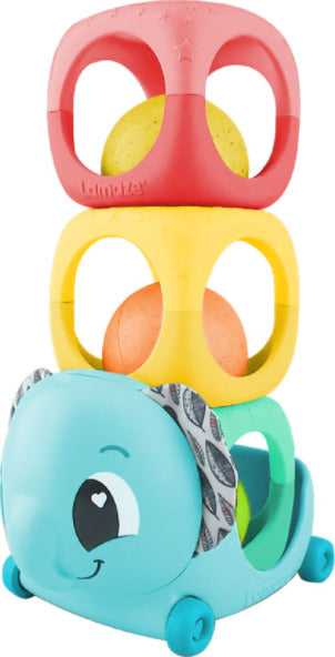 Roll into a happy tactile-learning adventure with the Lamaze Stack Rattle & Roll Blocks.