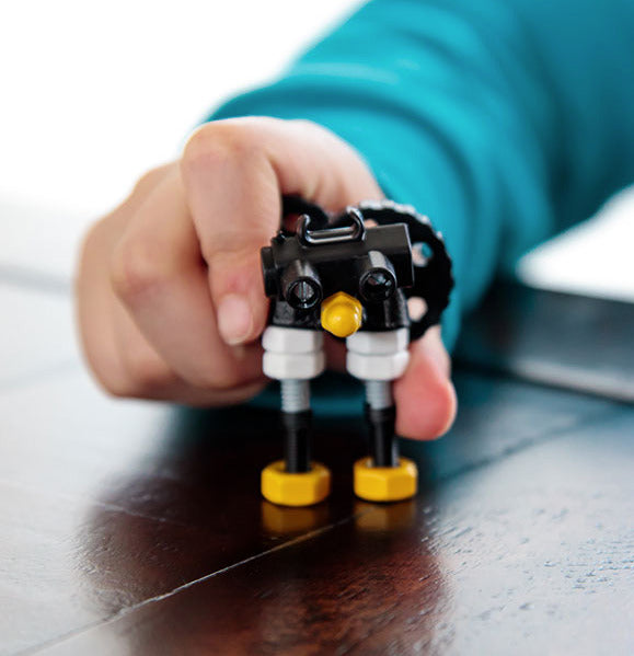 Creativity becomes the perfect pet! Following the illustrated instructions, kids easily transform the colorful jumble of nuts, bolts, and unique hardware shapes into a friendly little penguin figurine. Or - Want to take the fun even further? - Collect more OffBits sets and combine them to create your very own custom nuts-and-bolts masterpiece! Get an easy start on the art of spare parts with the OffBits PenguinBit set. OffBits PenguinBit Small set of unique hardware parts for building a penguin figurine Encourages fine motor skills, spatial reasoning, problem-solving, creativity, imaginative play Get an easy start on the art of spare parts! Illustrated instructions make building straightforward and easy Features special super-tool, illustrated building instructions Includes 20 building pieces, measures 2.25 x 2 x 2 inches Parts made of solid metal and plastic - Built for lasting durability, exceptional building experience Go online to register your kit and share your inventions