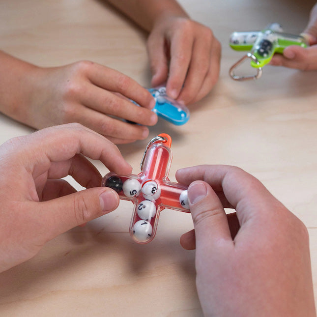 Tilt and roll to arrange the spheres into order, all while navigating around the blocker. Then, use the hole in the middle to hold them in place and show off your win.