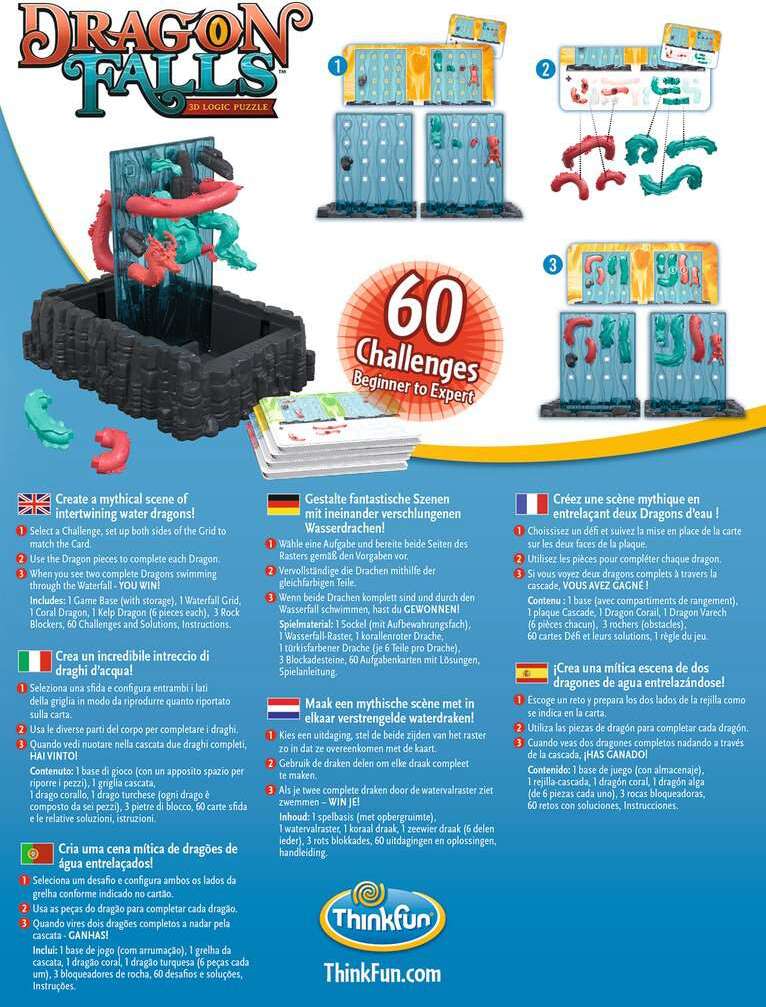 In Dragon Falls, your goal is to use the dragon pieces shown on each challenge card to build two complete water dragons. Dragons intertwine through the waterfall and around the jutting rocks in clever ways, so you’ll have to plan carefully to solve each puzzle. Once you master all challenges, create your own Dragon Falls scene to display! Use the Dragon pieces shown under “Add to Grid” to complete each Dragon. When you see two complete Dragons swimming through the Waterfall – YOU WIN!