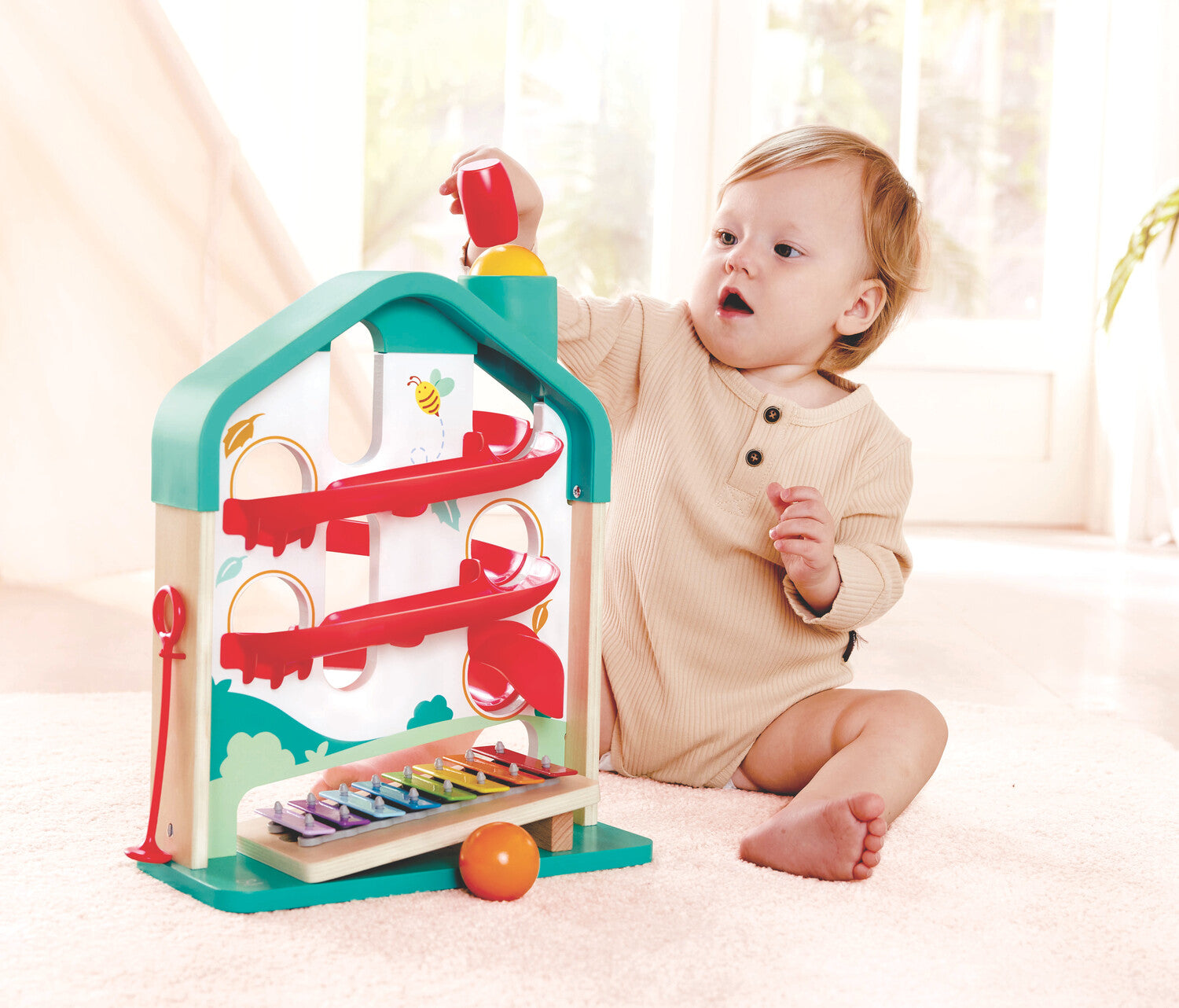 - HELPING BRAINS GROW: Exploring the ball track and playing the xylophone promotes cognitive growth, problem-solving, and critical thinking.