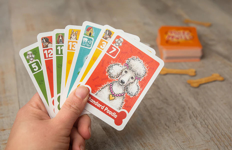 Another day of dog walking is over. Now it’s a race to be home first! Drop off dogs by matching their color, number, or breed, or play out of turn with matches and runs.