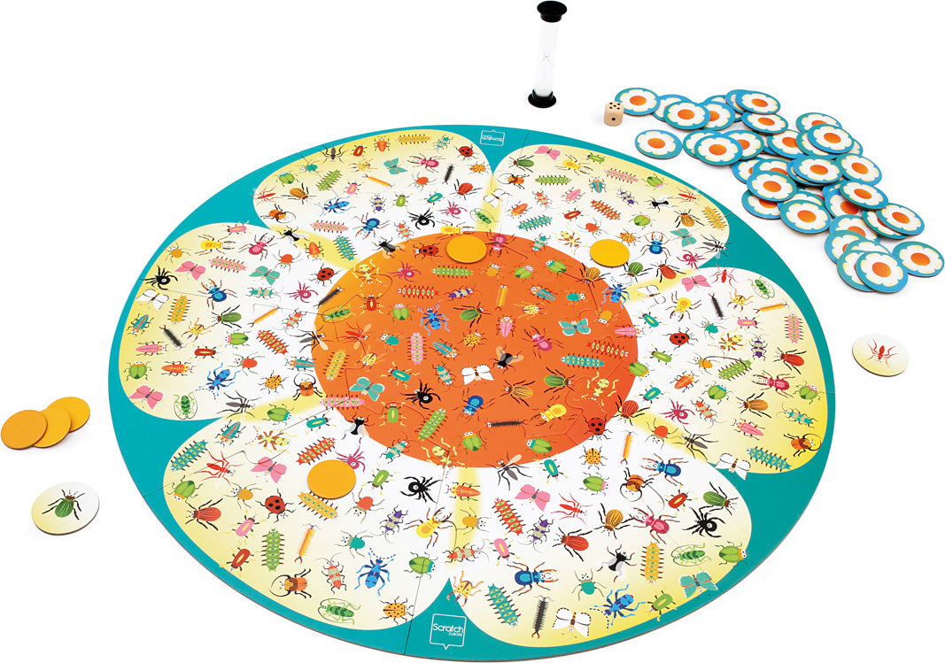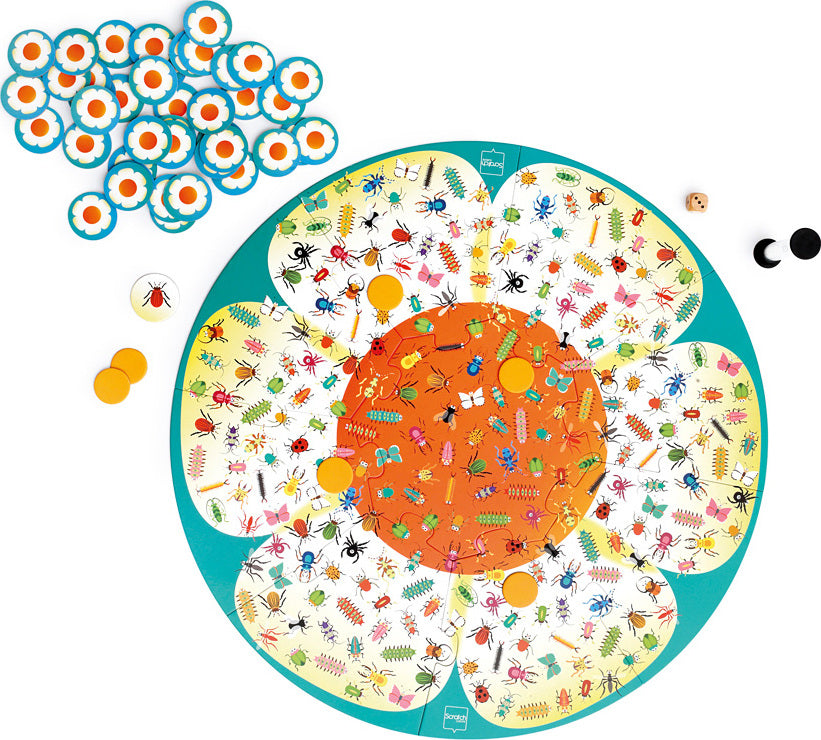 Roll the die, draw a card and find the right number of insects on the flower within the time provided. Don't let yourself be fooled, because some insects look very much alike!