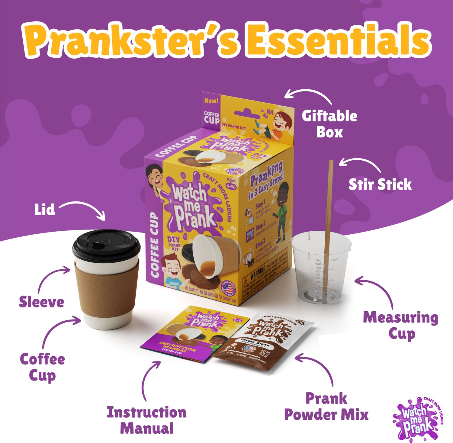 - Realistic Spill Trickery: Experience the genius behind our Coffee cup prank kit. Craft the ultimate spilled coffee ruse with our top-quality materials, perfect for pulling off fake coffee spill pranks on laptops, books, and desks. Whether it's for an April Fools' Day joke, office pranks, or just a spontaneous mischief, the laughter and surprise on their faces will be unforgettable.