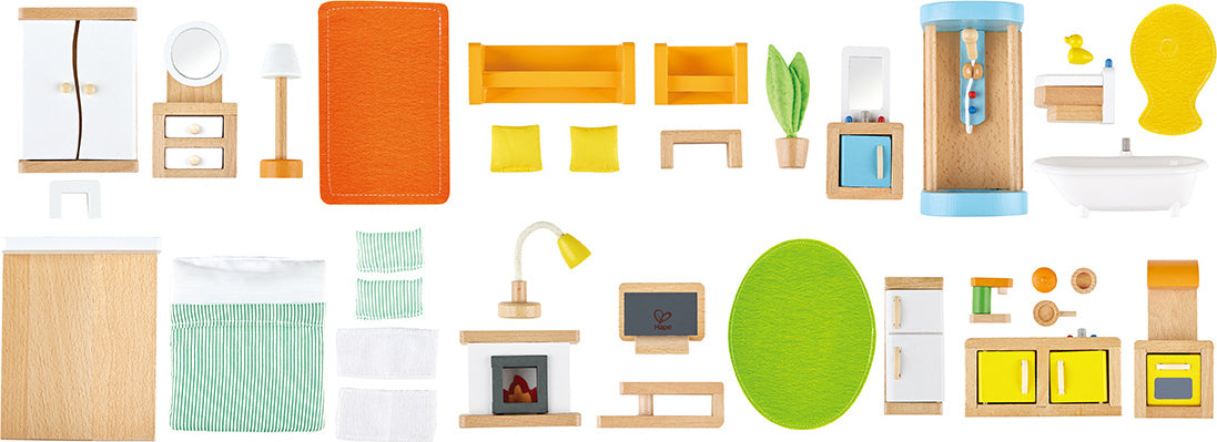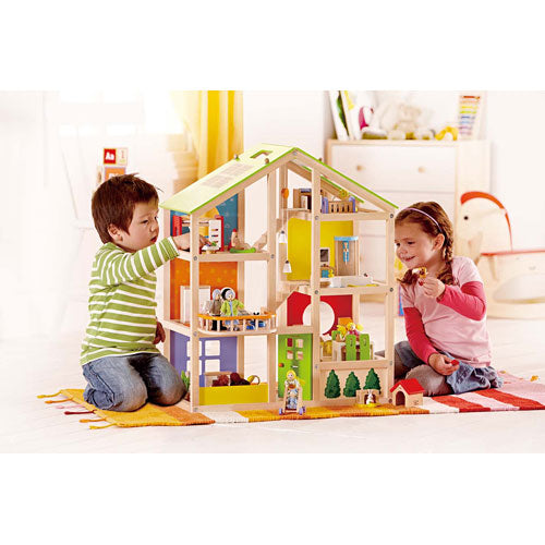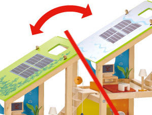 Welcome home! There are as many ways to play with this house as there families in the world. Six rooms, moveable stairs, and a reversible winter/summer-themed, solar-paneled roof inspire year-round activities.