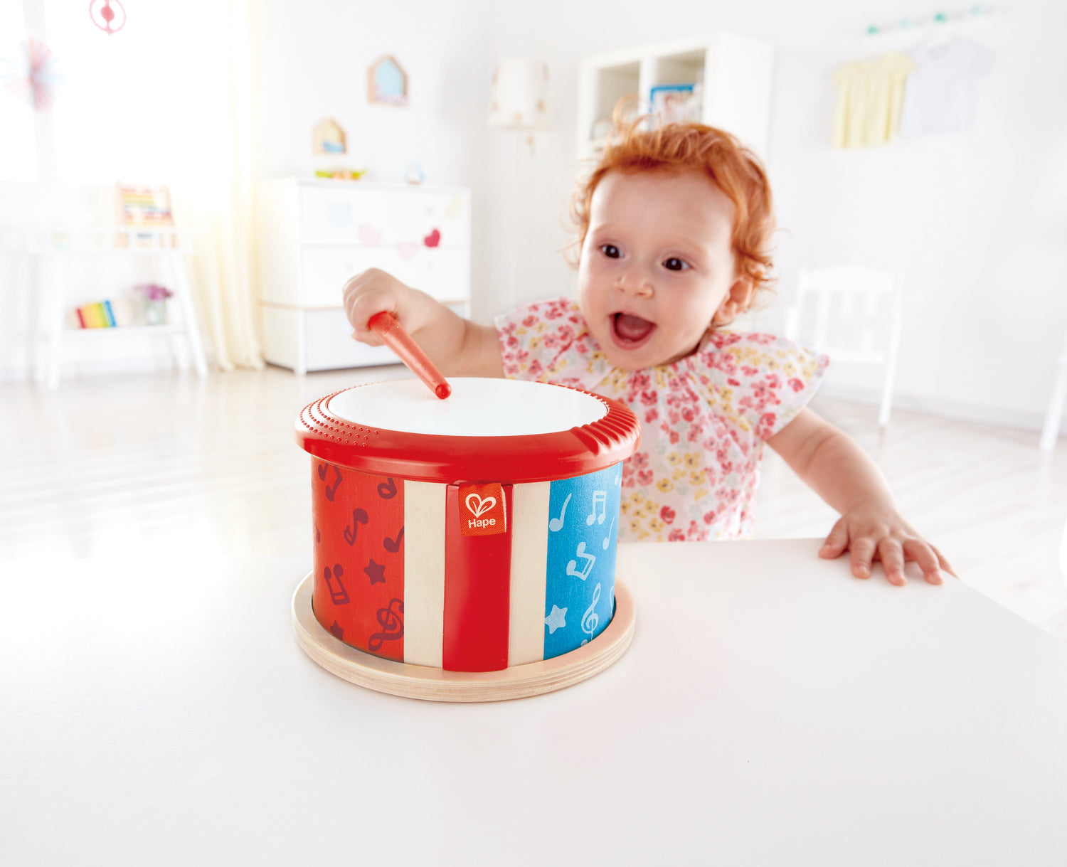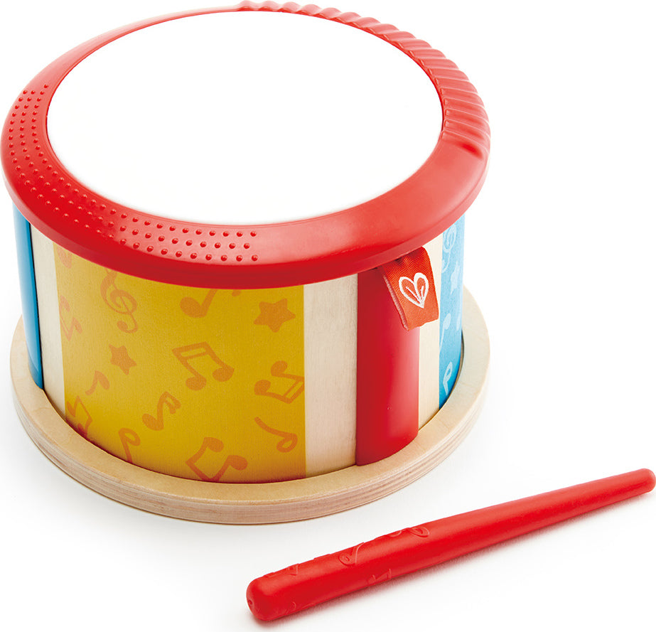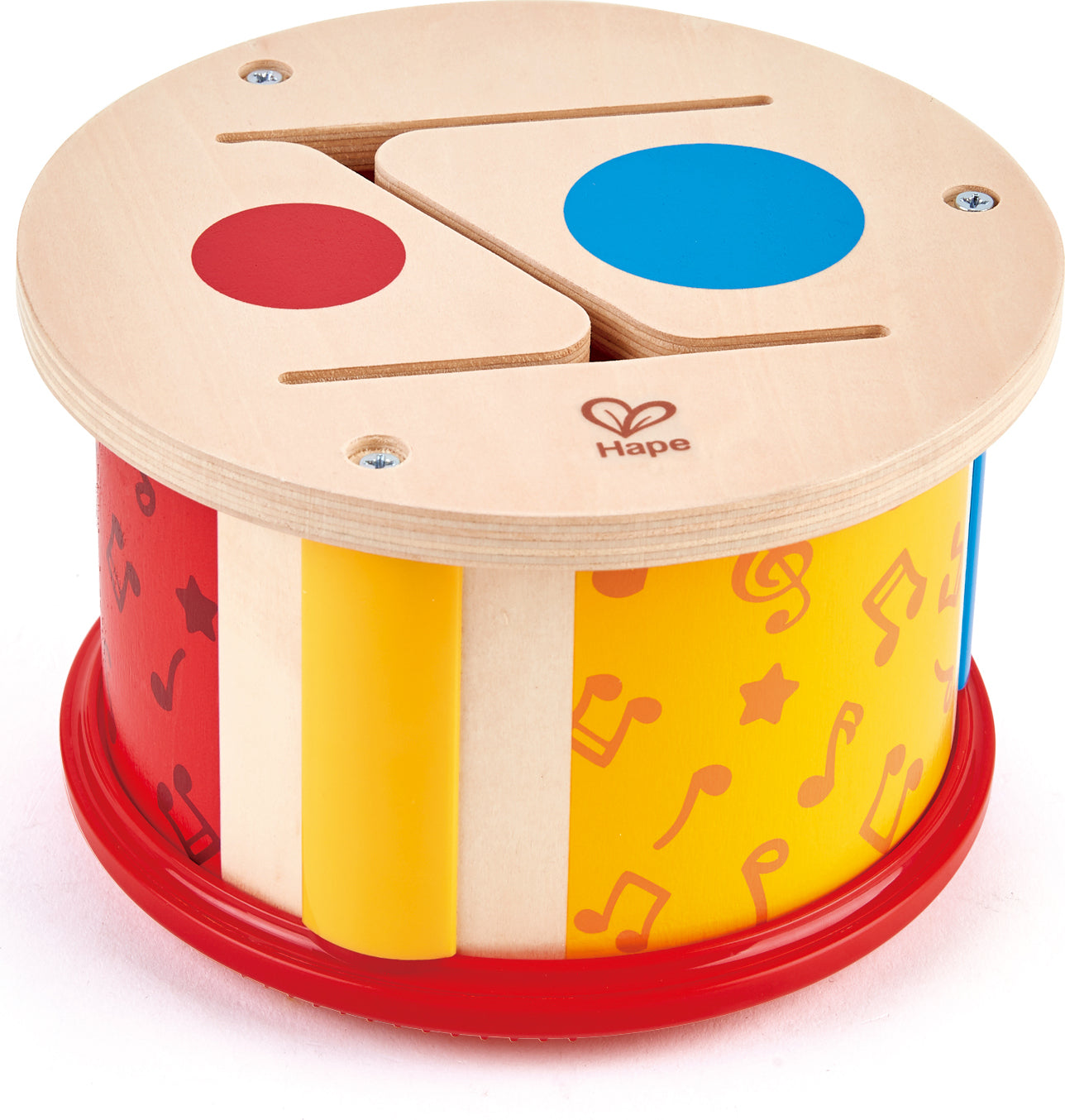 Create wild rhythms with this versatile drum! Use the stick on the top surface and the side ridges. Then flip over to play the wooden tone drum.