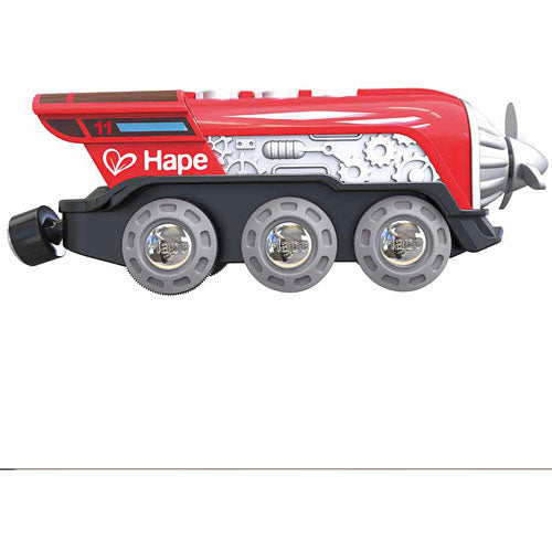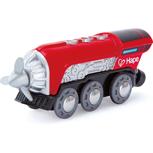 Is it a plane or a train? This fun propeller engine combines elements of both types of transport for a novel play experience. Powered by two AAA batteries, the engine's propeller spins when either forward or reverse gears are chosen.