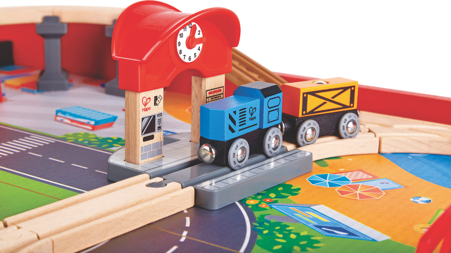Now you can choose to drive the big train or move the small one around the track! Sit in the train at the control board and press the buttons to hear fun train sounds or push the little train through the city on a fun adventure! With fun sound effects and