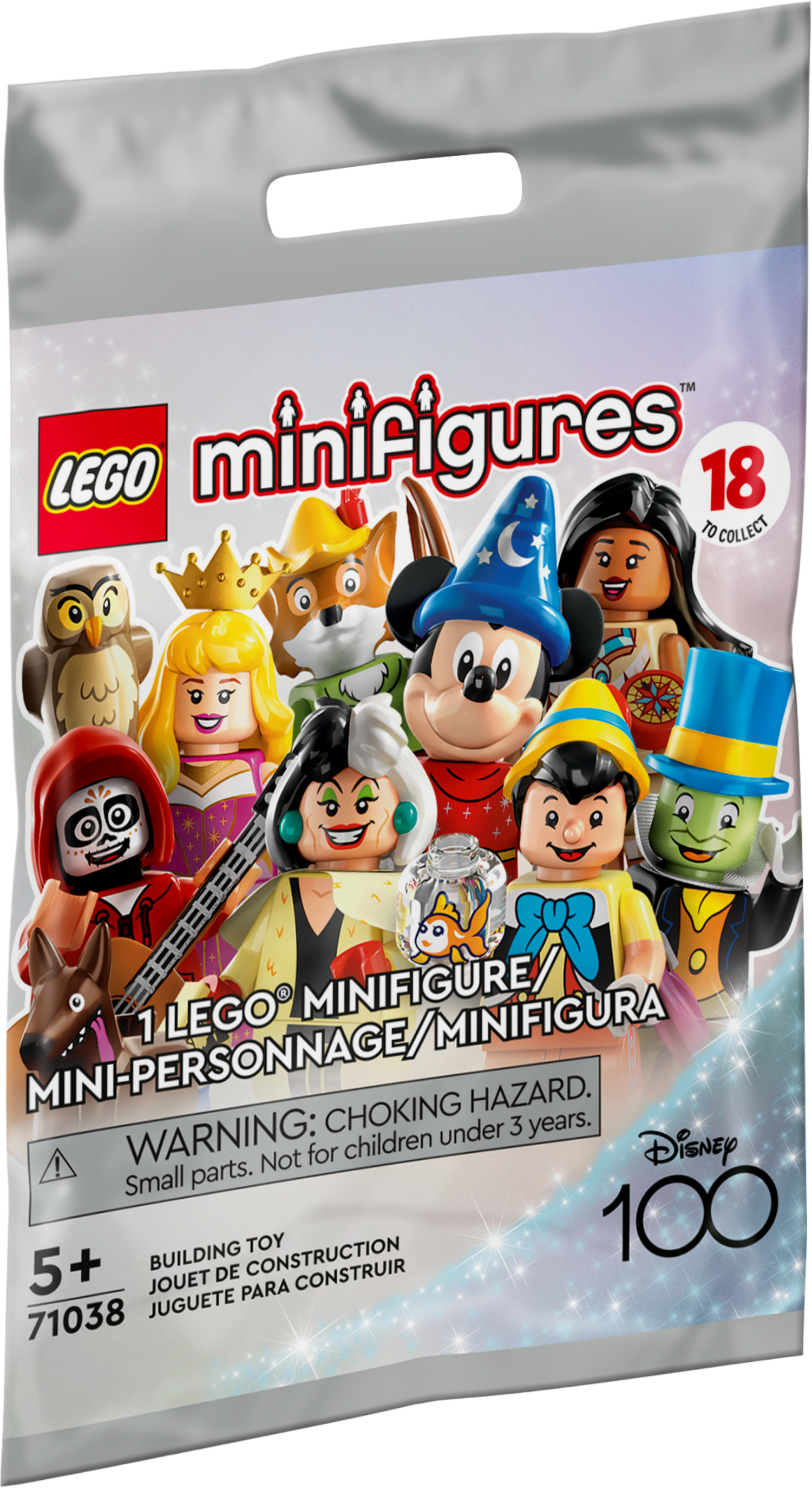 Kids aged 5+ can recreate their favorite film moments with these LEGO® Minifigures Disney 100 (71038) blind bags. New for May 2023, these popular and iconic animated characters from the past century can be collected, proudly displayed or used for exciting imaginative play.