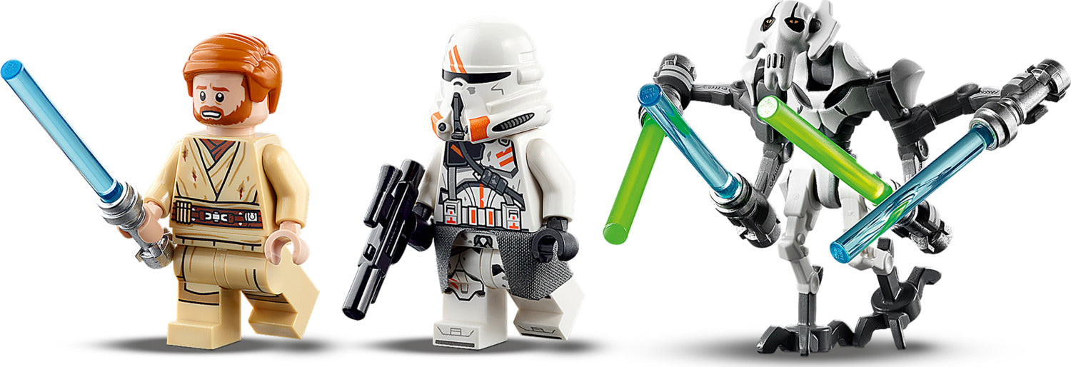 - This awesome building toy for kids includes 3 LEGO® Star Wars™ minifigures – General Grievous, Obi-Wan Kenobi with a Lightsaber, and an Airborne Clone Trooper with a blaster – to role-play fun, creative stories.