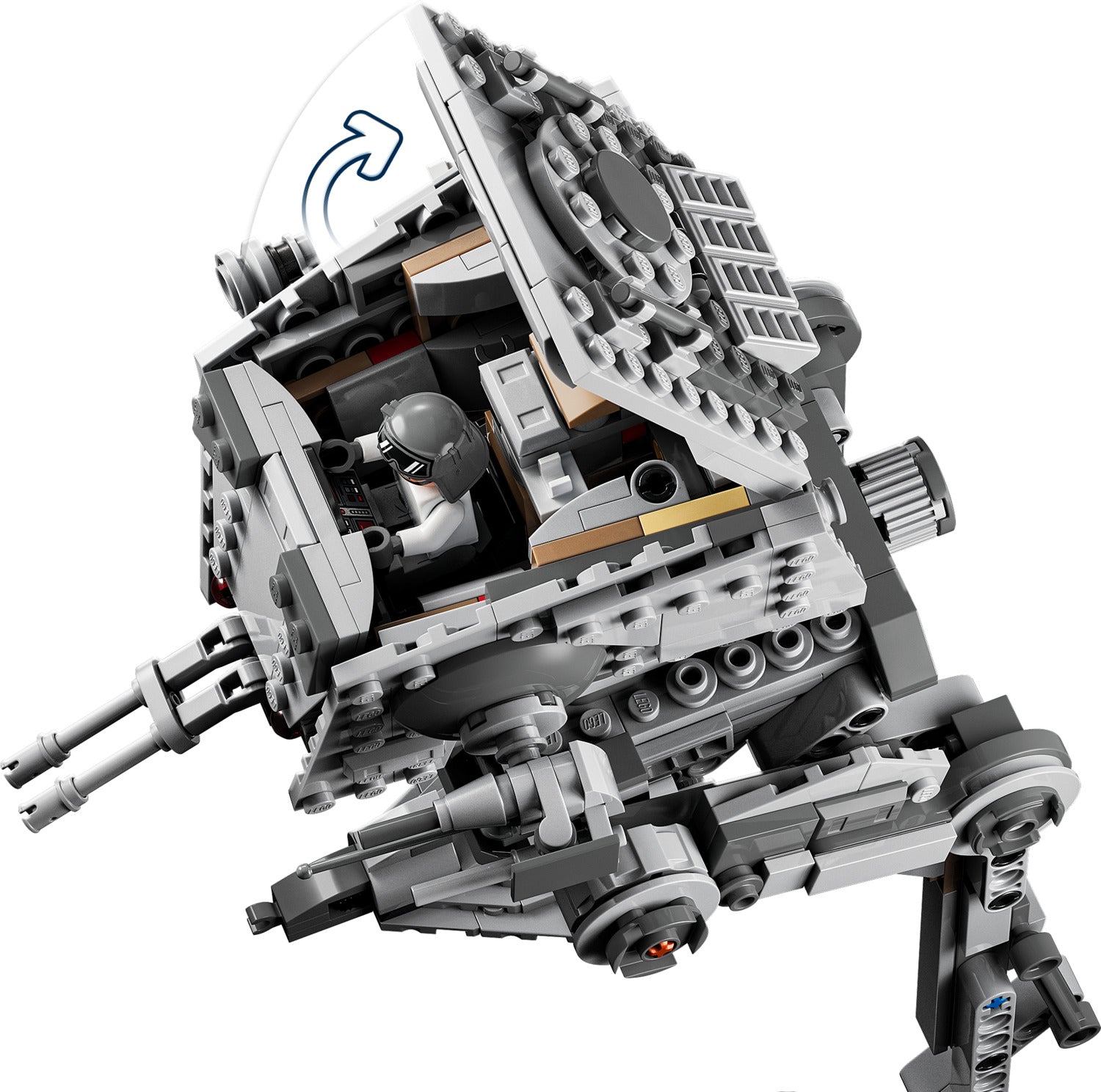 • Lots of play-inspiring features – The AT-ST walker features a minifigure cockpit accessible via a hatch and opening roof, a wheel-operated rotating head, 2 spring-loaded shooters and posable legs