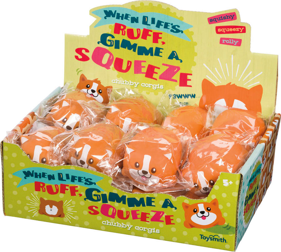 Corgis are all the rage. This rotund 3 in. long rover loaf fits well in small hands. Assorted colors. 3 yr plus.
