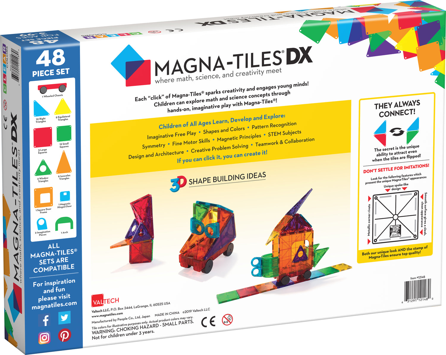 The Magna-Tiles DX Clear 48-Piece Set includes:
