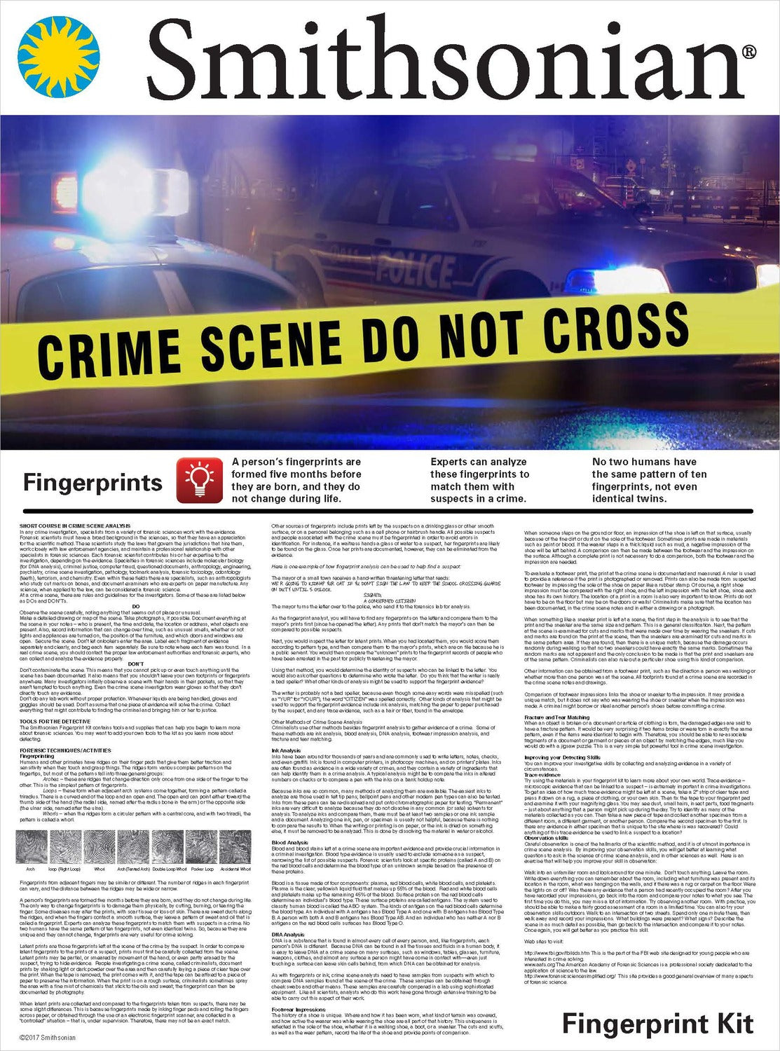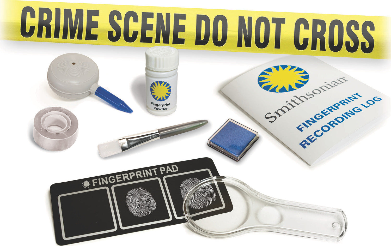 Now you can be a real detective! Fingerprint your mom, dad, brother, sister, and friends with the enclosed ink pad, then search for prints, just like real crime scene investigators! Dust the fingerprints you find, “lift” them with tape, and compare them against your log. See if you can make matches and identify suspects!