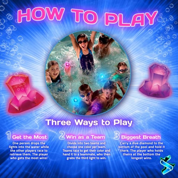 • EASY TO USE: The light up gems are simple to turn on, fast to clean, durable and reusable; Keep boys and girls entertained for hours of play while you relax by the pool. Includes 3 team game options or make up your own!