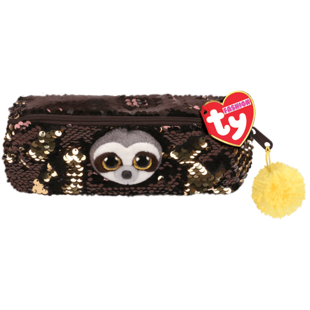 Dangler is ready to swing into action at school! His rich brown pencil case is sequined in the style of his Flippables, meaning his color design can flip with the stroke of a hand.