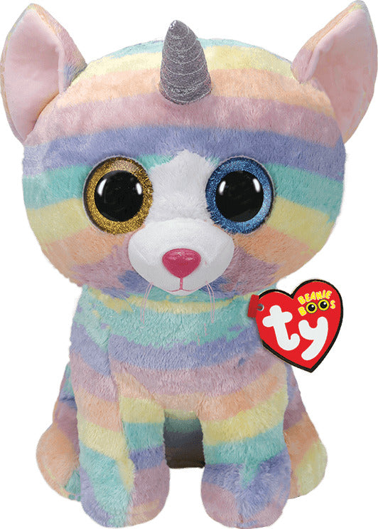 Seeing is believing with this two colored eye part cat part unicorn. Can you say "catacorn"? Heather is unlike anything you have ever seen with her pastel multicolored fabric and super sparkle horn.