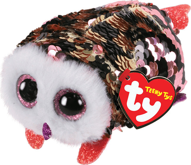 Whoooo is that This tiny, sequined bird is our one and only Checks! She's travel-sized and ready to fly with just a little glitter in her eyes. Checks is part of the Teeny Ty collection, the smallest sparkling pals in the land! BIRTHDAY: November 19 This owl features color-changing reversible sequin fabric With a quick swipe of your hand, change from one color to the other! Sparkling sequins captivate and delight It's game night with Checks around! Includes official Ty Heart with birthday Surface clean only 4 in ( cm )
